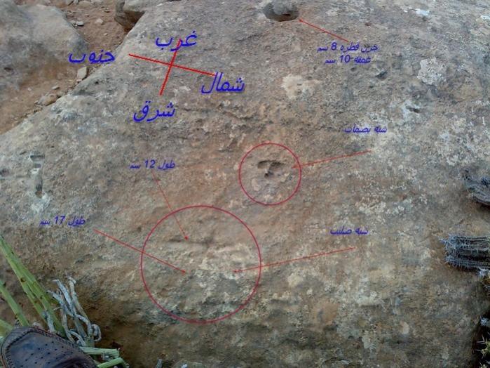 كما يوجد بالصخرة نفسها 3 بصمات ورمز يشبه الصليب.