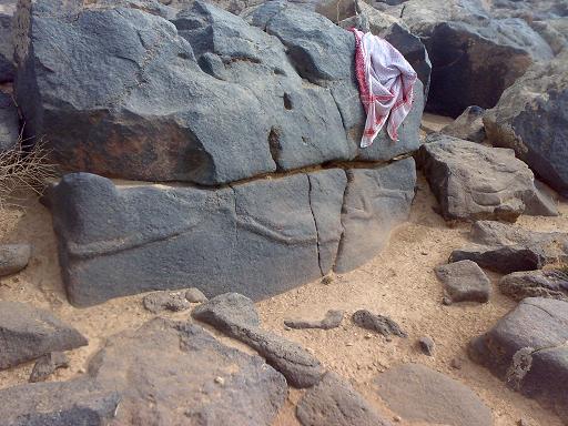 مع عدم إغفال شكل الهلال الذي بنهاية الإشارة على الصخرة الثانية ، مقابل إشارة الشماغ