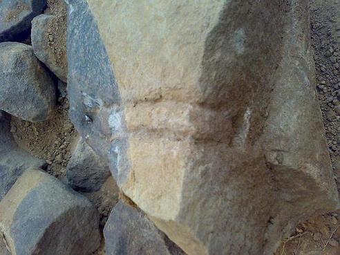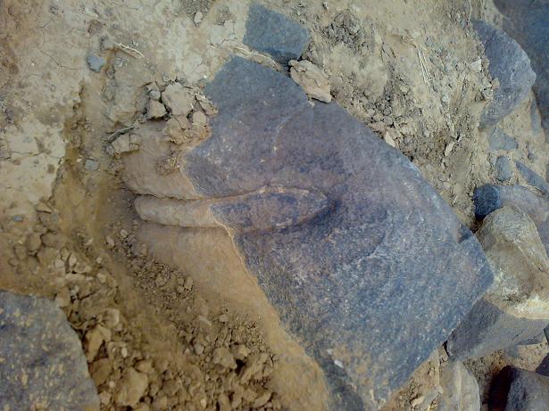 وهناك امامها حجر يستطيع رجل ان يحمله عليه نفس الاشارة وهي ملتف وبنفس القياسات ولاتبعد اكثر من2م اليكها :