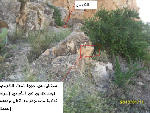 الرجاء من الاخوة فك رمز هدا الكرسي الموجود في وسط الجبل و هو شرقي الاتجاه و يطل على وادي