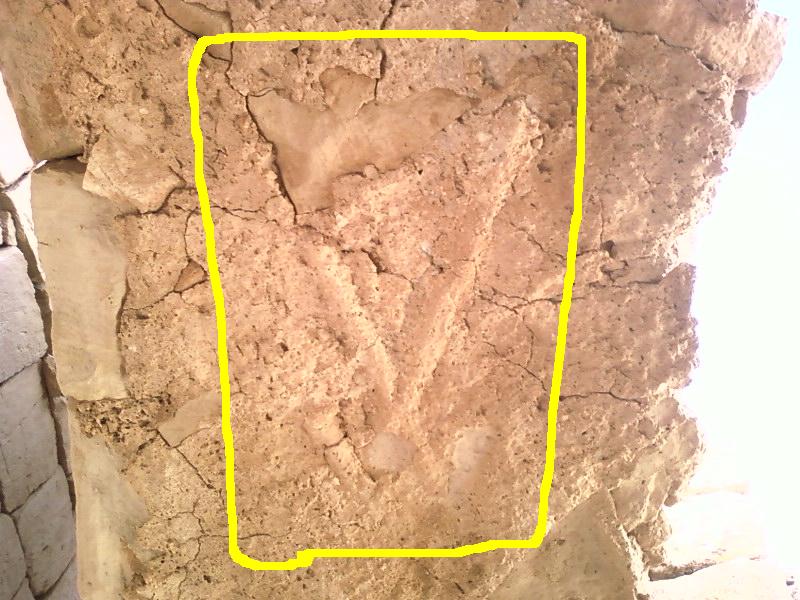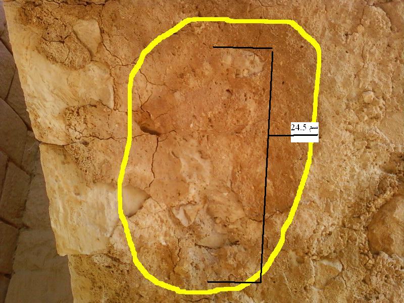 اخواني خبراء الاشارات في قسم اشارات الانسان واعضاؤه امل منكم تفسير هذه العلامة او الاشارة وهي موجودة على تجويف القوس من الداخل بالتحديد عندما تدخل القلعة وتقف تحت القوس ترفع رأسك تجد الاشارات امام عينيك داخل بطن القوس بقلعة رومانية على رأس جبل بمنطقة صحراوية خالية ارتفاعه حوالي ثلاثة مائة متر وهي علي التوالي بالارقام ( 1 - 2 - 3 ) الرقم ( 1 ) هي لقدم يسرى طولها ( 24.5 سم ) اما الصورتين الثانية والثالثة فهما امام القدم مباشرة الواحدة تلو الاخرى تفصل بينهم مسافة قدرها ( 30 سم ) وهي لعلامة لم افهم معناها وطولها من رأس السهم الى قاعدته ( 20 سم ) وأسأل الله العلي القدير لكم الرزق الحلال انه ولي ذلك و القادر عليه