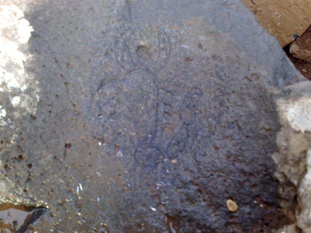 هذه صورة عقربا رسم على حجر وسط رجم تبعد عن الوادي 200 م