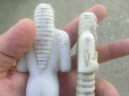 عرض علي هذين التمثالين لا اعلم مما هما مصنوعين