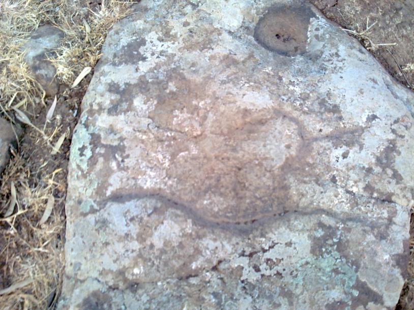 الصورة الاولى:نرى اشارة الحية وبقربها على نفس الصخرة نرى جرنا" وهذا هو الحل بأذن الله واعلم اخي ان الله اعلم واجل: