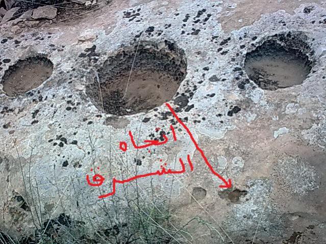 السلام عليكم ورحة اللـه ارجو من الاخوة المحللين افادتي بحل لهاته الجرون الثلاث فكما هو مبين في الصور يوجد هناك ثلاث جرون على حجر غير متحرك اما فيما يخص القياسات ههو كالتالي الجرن الاول طوله 8سم وعمقه 2سم و الجرن الثاني الذي يوجد في الوسط قياسه كايلي طوله 20 س و عمقه 2 سم اما الجرن الاخير فقياسه كالجرن الاول ويوجد في نفس الصخرة بحوالي 20 سم جرن صغير كما هم موضح في الصورة علما انه في اتجاه الشرق اما فيما يخص المنطقة يوجد فيها الكثير من الرجوم و التبات جبلية