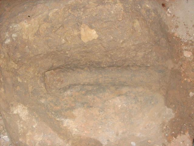 بسم الله الرحمن الرحيم السلام ايها الاخوة الكرام وجدناهذا الرمز في نفق تحت الارض وكان مغطي بالتراب لان النفق كله ملئان بالتراب ونضفنا قرابت 15 متر منه اني قد وضعة معطيات الرمز في الصورة التي رسمتها باليد.وجزاكم الله خيرا