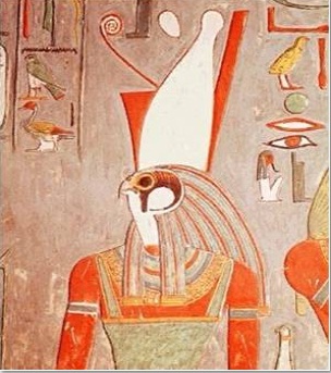 نقش ملون، يصور المعبود "حور سا إيزة" "حور، ابن إيزة" بالتاج المزدوج