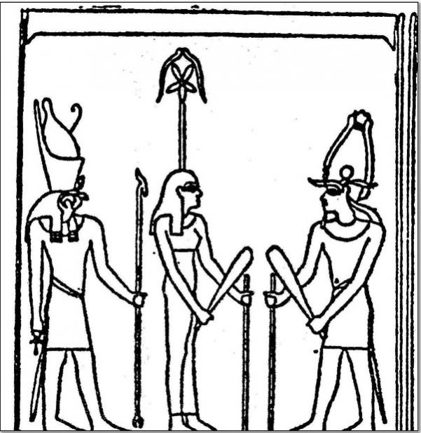 الملك يقوم بتكريس المعبد لصاحبه المعبود، وتشاركه الربة "سشـات".