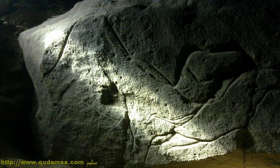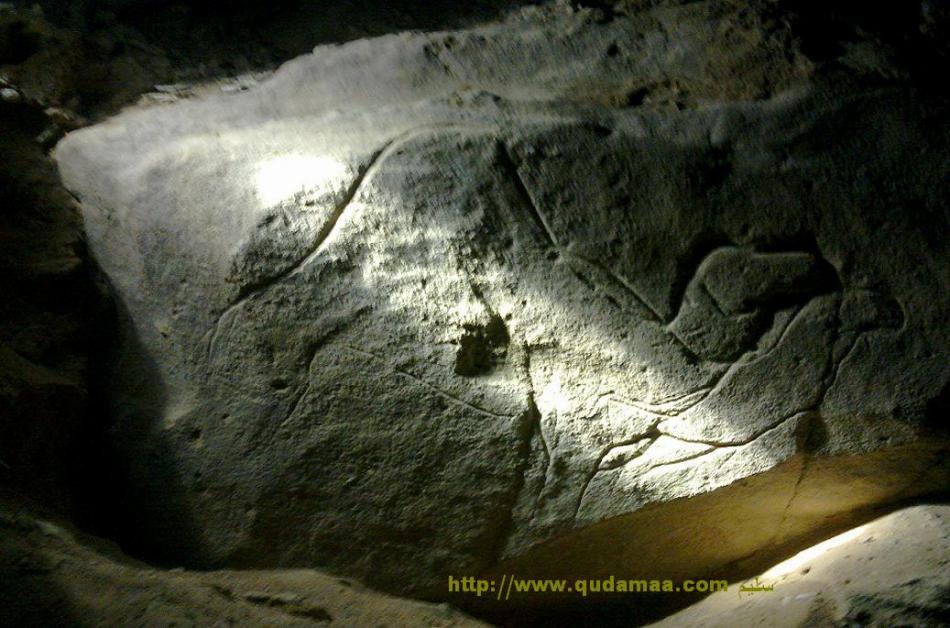 بعد عمق 60 سم تقريباَ وجدنا هذه الصورة على حجر كبيرة ثابتة ، ولم نصل إلى يقين