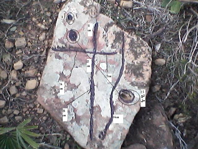 نعم نحن هنا لنعطي الحلول لكن بشرط ان تكون الصور في المستوى المطلوب وليست مثل التي بها يا مخلوف فهذه غير واضحة انت تراها صليب وربما تكون شيء اخر مثل حرف تي وهذا يغير التحليل زاوية 90 درجة ارجو منك صور اوضح بعد تنظيف الحجر ووصف لبقية الاشارات وقياساتها وشكرا