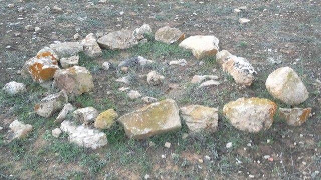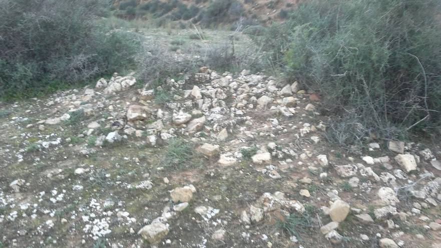لديك جرن صغير شبه مفرد اريدك ان تاخذه كتجاه هو سيوصلك للقبر الموجود في المنحدراو المكان المنخفض على مستوى الارض ومن ثم تسهل معك ايجاد بقية القبور التي ارجح وجودها فوق ربوة عالية