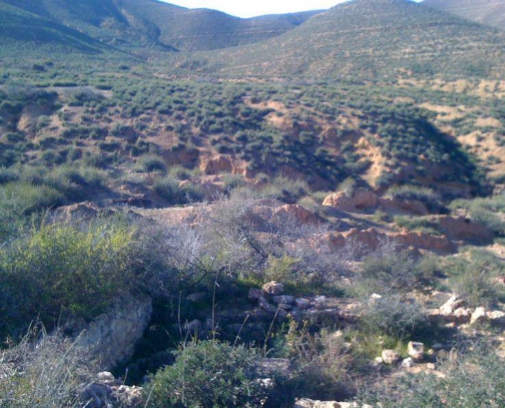 فأعلى الصورة هو الشرق وفي نفس الاتجاه الحائط والى اليسار قليلا اتجاه القبور غير انها أبعد والوادي شرقي وشمالي ويلتقي في الشمال الشرقي