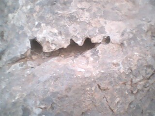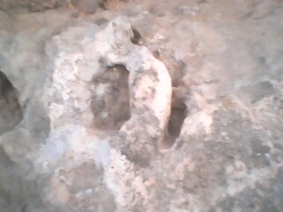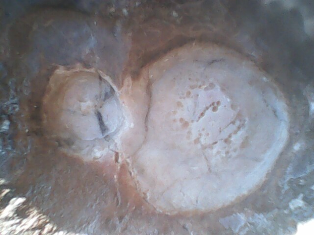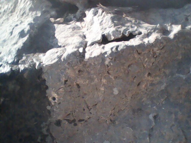 1-الجرن الذي قعره فيه مادة بيضاء لو سمحت حاول ان تنزع الطبقة البيضاء بهدوء بالازميل والمطرقة لنر ماذا تحت هذه الطبقة