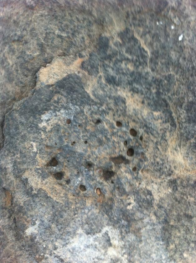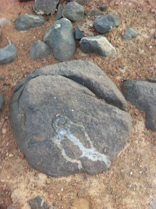 اما الموجود امام الحصاة بتجاه حرف الدال او الهلال على مسافة تقريبا 15 متر وهو شي مميز فقط صخرة دائرية عليها دقات حفر صغيرة بمنتصفها تشكل دائرة . ومرفق صورتها .