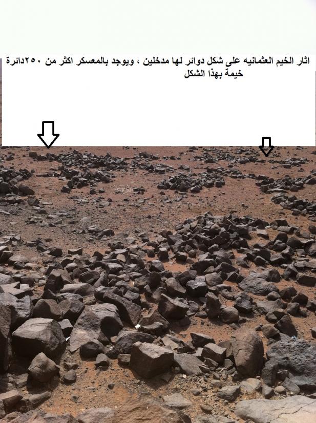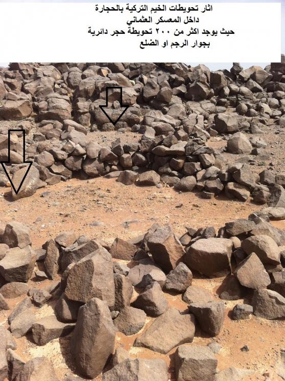 هاذي صور لأثار المخيم التركي او العثماني وهي عبارة عن تحويطات دائرية حول الخيمة ولها بابين ، وتأتي بشكل دائري .