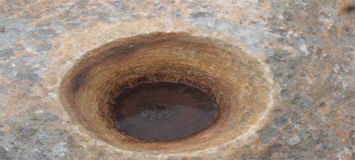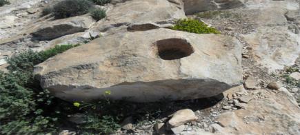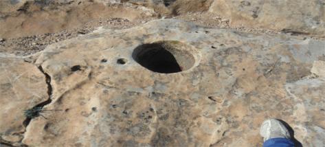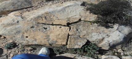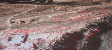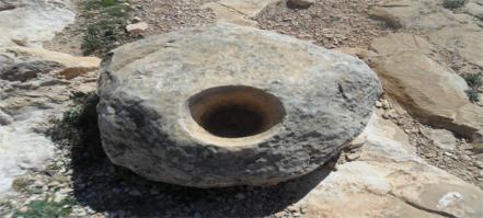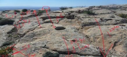 4 اجران مخروطية في اعلى الجبل وبجانب منحدر:وجود منقلة وسيالات وبصمات رجاءا الحل