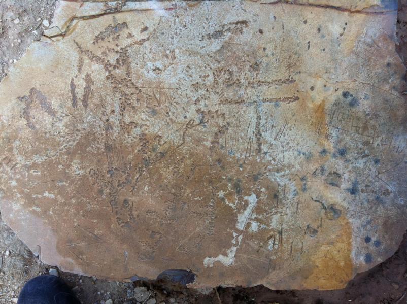 إخواني الأكارم أرجو إفادتي في هذه الخارطة و التي تحتوي على رسم لسيارة و مجموعة الخطوط المتدرجة والأرقام و المستطيلات و حرف T من فوقه خط و الحجرة في وادي في شمالها الغربي بئر ماء و أمامها تلتان و مجموعة من القبور