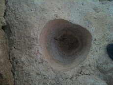 السلام عليكم,هذه اشارة اخرى و اتمنى ان اجد لها معكم تحليلا كالاشارة التي بمشاركتي السابقة .هي عبارة على جرنين على صخرة ثابتة بجنب وادي و هذه الصور و القياسات الجرن الاول قطره من فمه ٣٥ صم ومن القاع ٢٠ و عمفه ٤٢ صم و الجرن الثاني عمقه ٣٨ صم و قطره من الفم ٣٥ و من القاع ٢٢ صم و المسافة بينهما ٧٥ صم