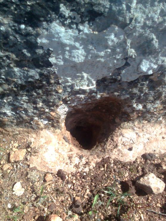 أعزائي المحللين في مكان ليس بالبعيد عن منطقتنا جرن مستطيل الشكل وإلى جانبه جرن صغير دائري يبعد عنه حوالي متر ونصف وجرن آخر مستطيل يبعد عن الدائري25متر من جهة الشمال - وعلى زاوية الجرن المستطيل المذكور أولاً وعلى بعد 16 متر سيالتين واحدة كبيرة وأخرى صغيرة واحدة طولها110سم والأخرى39سم وفي زاوية الجرن أيضاَ الزاوية اليسارية الشمالية وعلى بعد 40متر ملعقة طولها19سم طول الذراع 13 ورأس الملعقة6سم- وفي الزاوية اليمينية للجرن وعلى بعد40متر بأتجاه غربي جنوبي جرن مدور كبير وبداخله آخر صغير له سيالة باتجاه الجنوب وجرن آخر مدور يبعد عنه متر له سيالة باتجاه الشمال - نعود للجرن المستطيل المذكور أولاً ففي زاويته بأتجاه الغرب تماماً صخرة مقصوصة من الجبل كأنها حائط وتحتها على الأرض جرن مدور صغير قطره 11سم وألى جانب كل هذه الأشارات بئر ماء - نسيت ذكر أن واحد من الجرون المدورة غميق جدا ً أذ أننا حاولنا حفره ووصلنا ألى المترين دون جدوى وسكبنا ماءً كثيراً كأننا لم نسكب شيئاً - فما تفسير كل هذا سأوافيكم بكل القياسات والأتجاهات بدقة أذا طلبتم ولكم جزيل الشكر