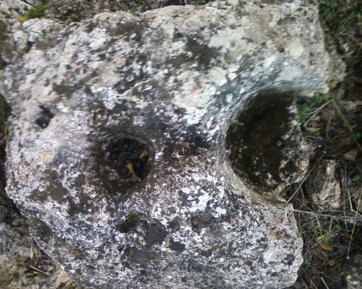 خارطه على صخرة عليها ثلاث طلقات وجرن صغير وجرن كبير