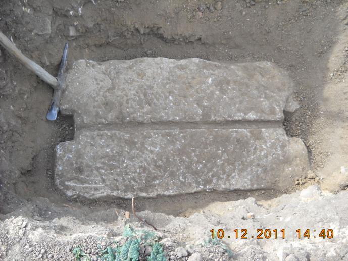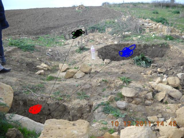 الرمز الثاني سداية رومانية على عمق متر تقريبا وطول السيال متر تظهر في الصورة باللون الأزرق