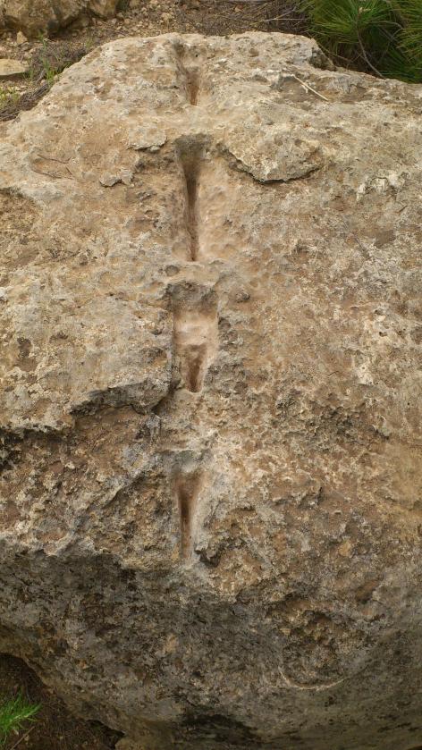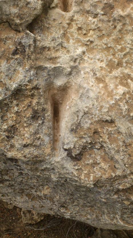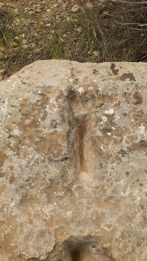 شكرا استاذ حسن أحمد . أخي السيال اظنه توجيهي لأن الجزء المذبب منه هو إتجاه الميلان يعني الماء يخرج ليس من الفتحة لكن من الجزء المنحني و في إتجاهه وجدت الحجر الحامل للجرون . أخي لو تأملت لوجدت ان البصمتين عكس الميلان . في إتجاه البصمة مرتفع ينتهي بحائط مقابل للبصمتين و هناك جرن جانبي كأنه يدل على شيء أسفله و بالفعل أسفله توجد حفرة جانبية تحت الجرن بالضبط و قطرها يمكن 50 صم و عمق 30 صم يمكن مكان الدفين لكن غير متقنة لتكون مكان دفين فماذا ترى ؟ ليس عندي قياس الجرون لكن تقريب لا تتجاوز 8 صم