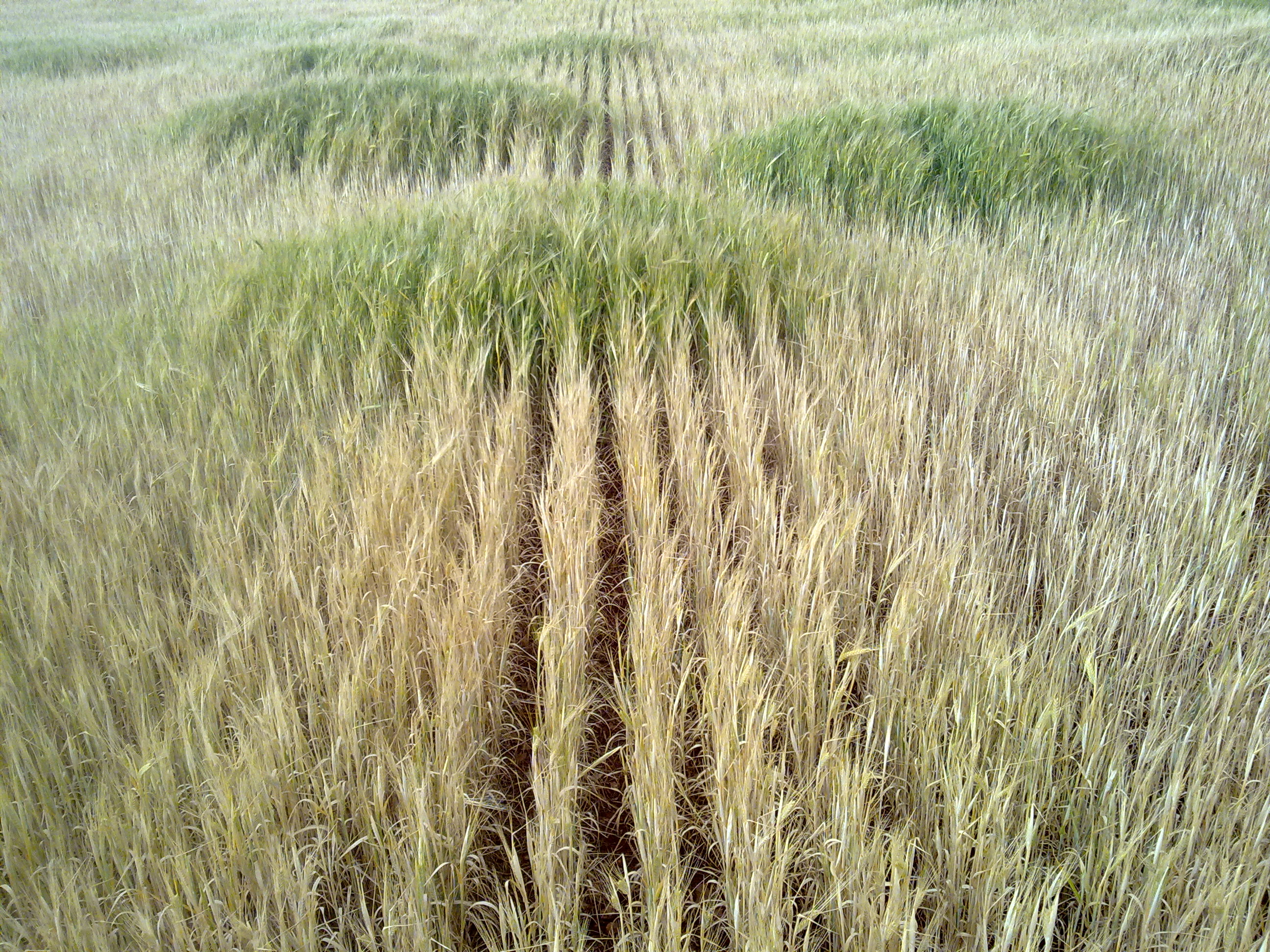 لدينا ارض قد زرعت شعير ولكن لفت انتباهي منذ ايام بقرب موسم الحصاد الشعير كله بدا ياتي اكله الابعض التبر اجدها خضراء قليلا بعضها على شكل دوائر وبعضها مربع وبعضها مربع من ثلاث جهات وجه بشكل دائره