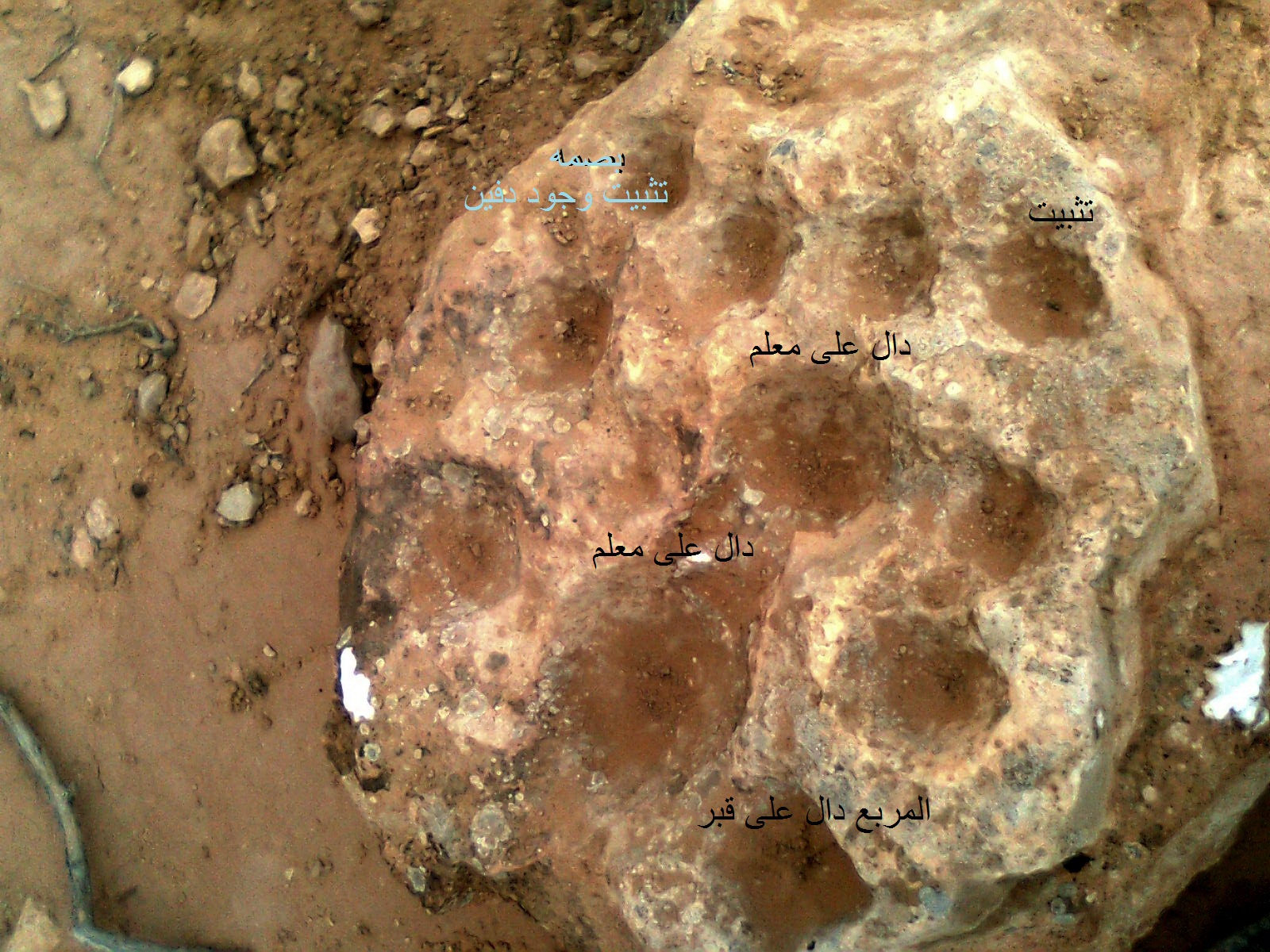 بسم الله الرحمن الرحيم والصلاة والسلام على سيدنا محمد صلى الله عليه وعلى اله وسلم شكرا لكم على هده التواصل والتحليل امابعد...اخي جوال سريع هل افهم من هدا الرد ان لايوجد دفين تدل عليه هده العلامه وماد عن الحجر المنصوب امام العلامه والاحجار الاخرى المدفونه في الارض.وشكرا