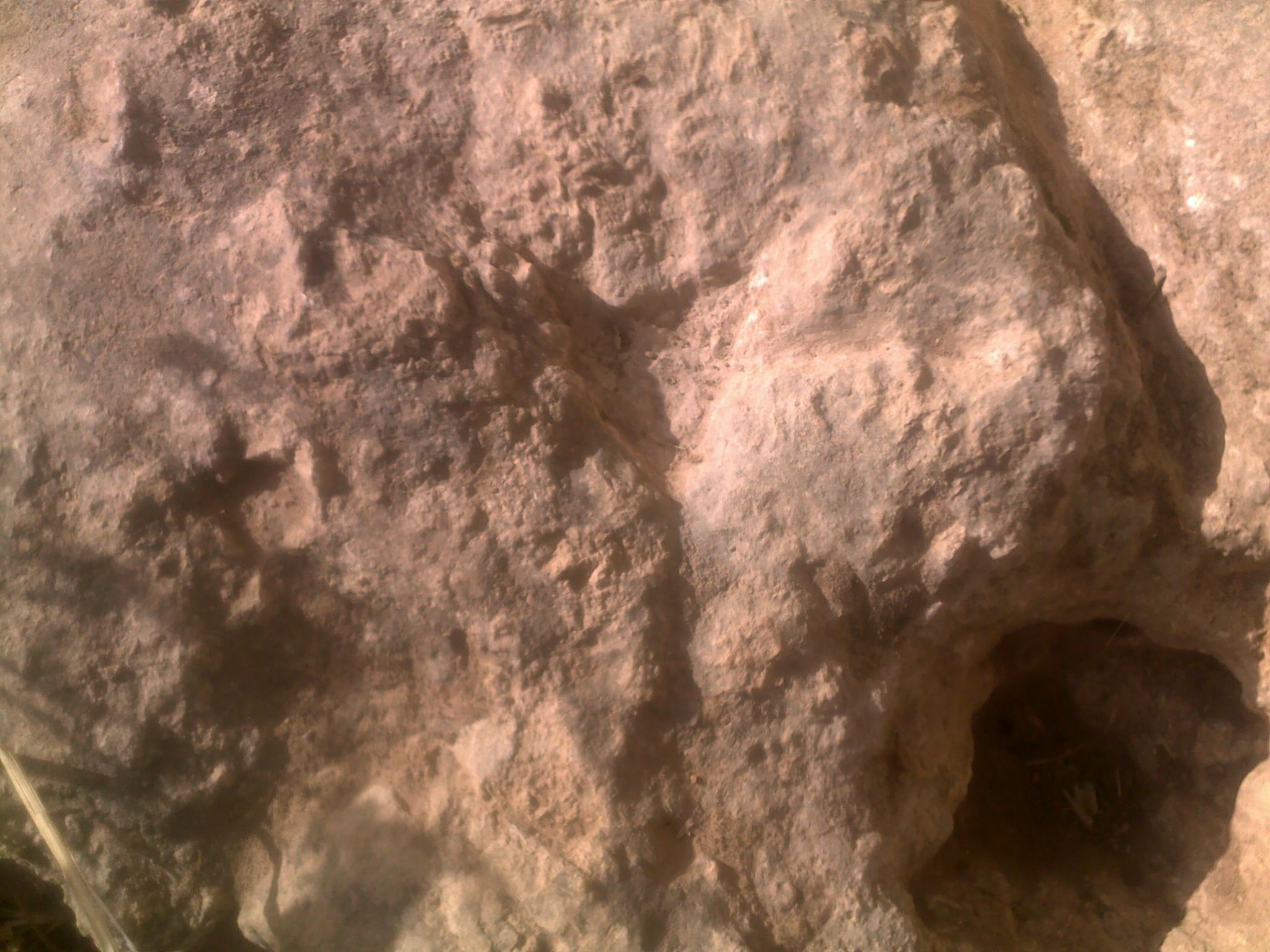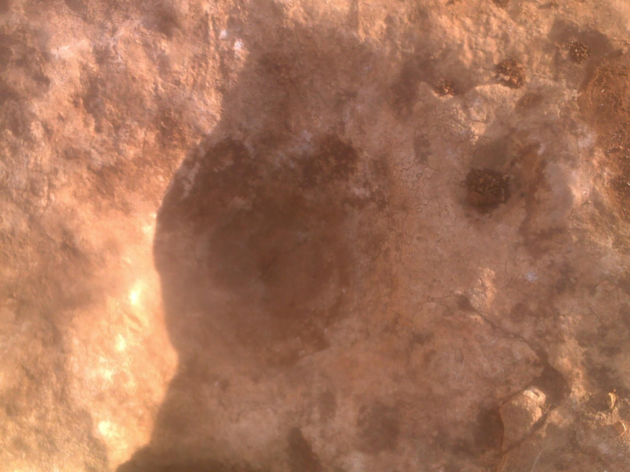 من ناحية اخرى لقد وجدت بصمتين (والله اعلم) للابهامين الايمن والايسر بجانب بعضهما البعض على صخرة ثابتة بالارض بعيد عن الجرون الاربعة ما يقارب 25 متر وسوف اتاكد من المسافة بالضبط اليوم