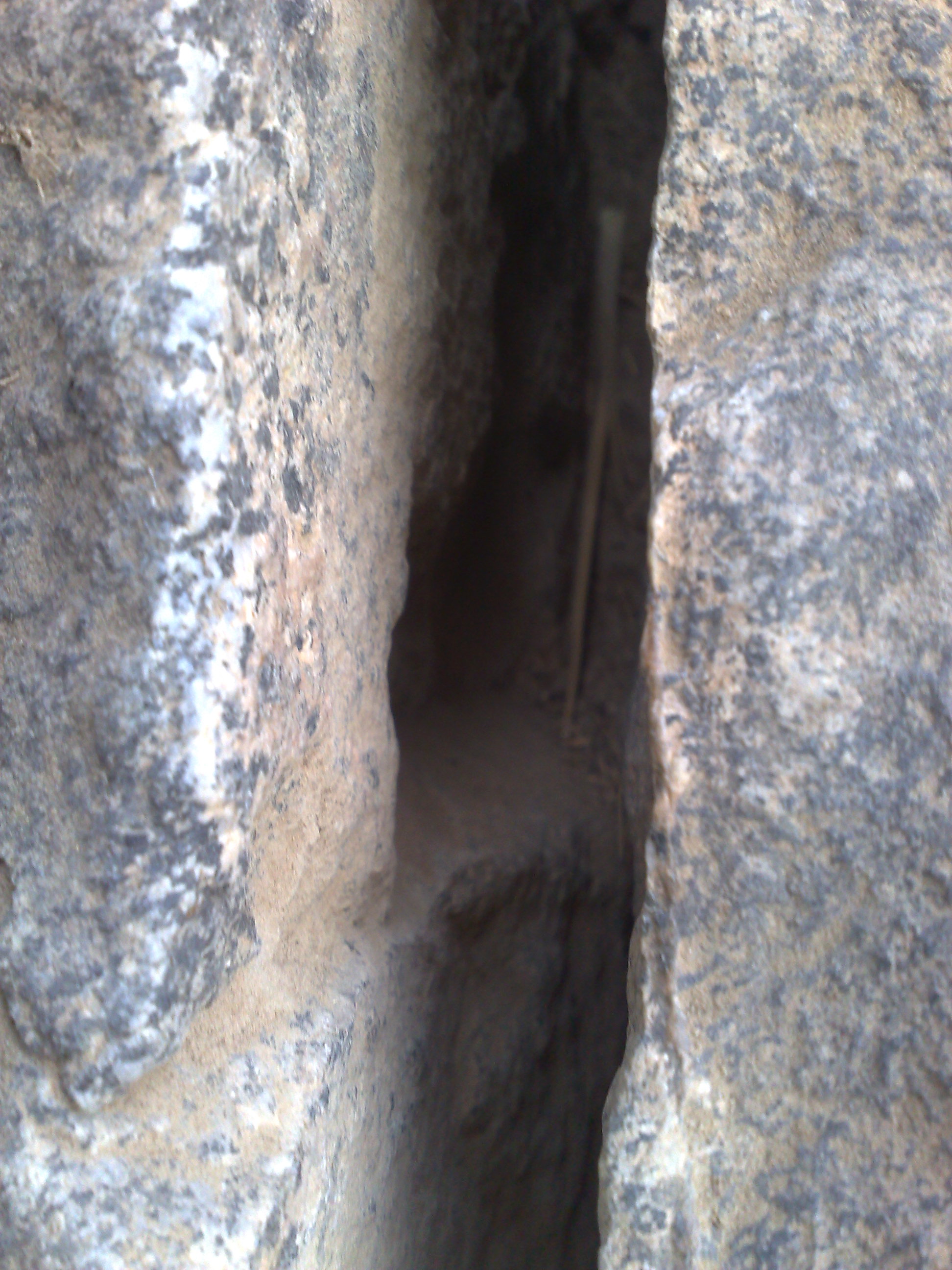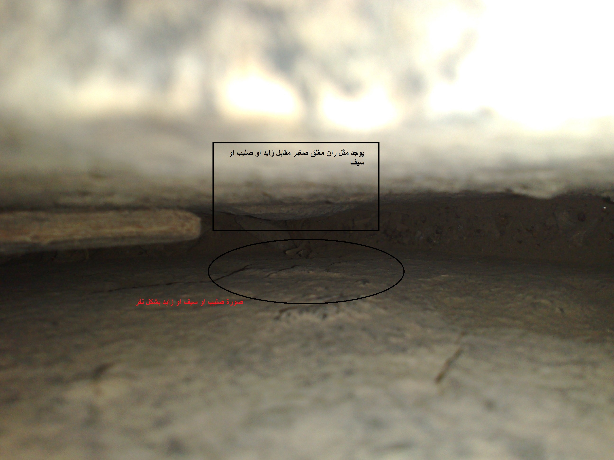 وايضا عند علامة الزايد او السيف يوجد مثل بصمتين او دائرتين او حفرتين لم استطع تصويرها بسبب ضيق الحجرين