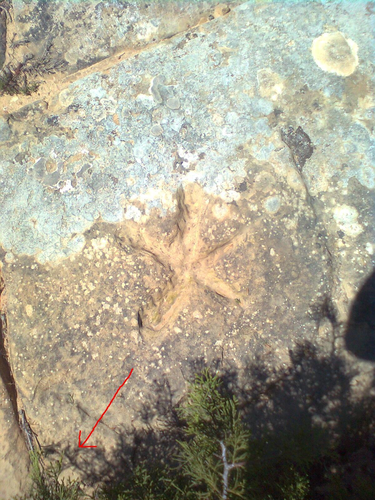 السلام عليكم ورحمة الله اخوتي في الله هل هذه نجمة وهلال ان كانت نجمة وهلال في الصورة اللتي فيها في اتجاه السهم على بعد 8متر تفريبا يوجد حجر عليه شحطة نازل الي الارض كم يضهر في الصورة ارجو من الاخوة التعاون