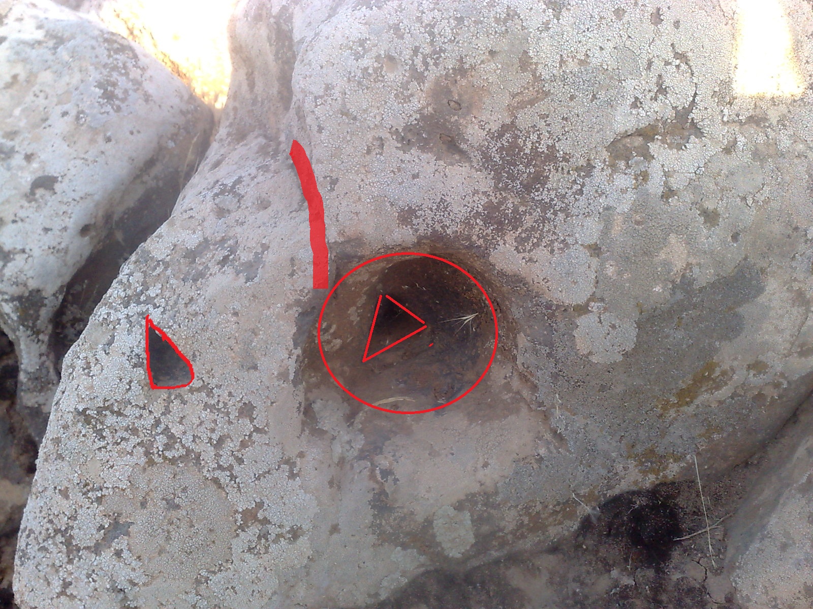 الاخوه الكرام وجدت هذا الجرن الدائري الجانبي وبداخله جرن مثلث وبجانبه جرن مثلث ارجو المساعده علما ان المكان على حافة وادي