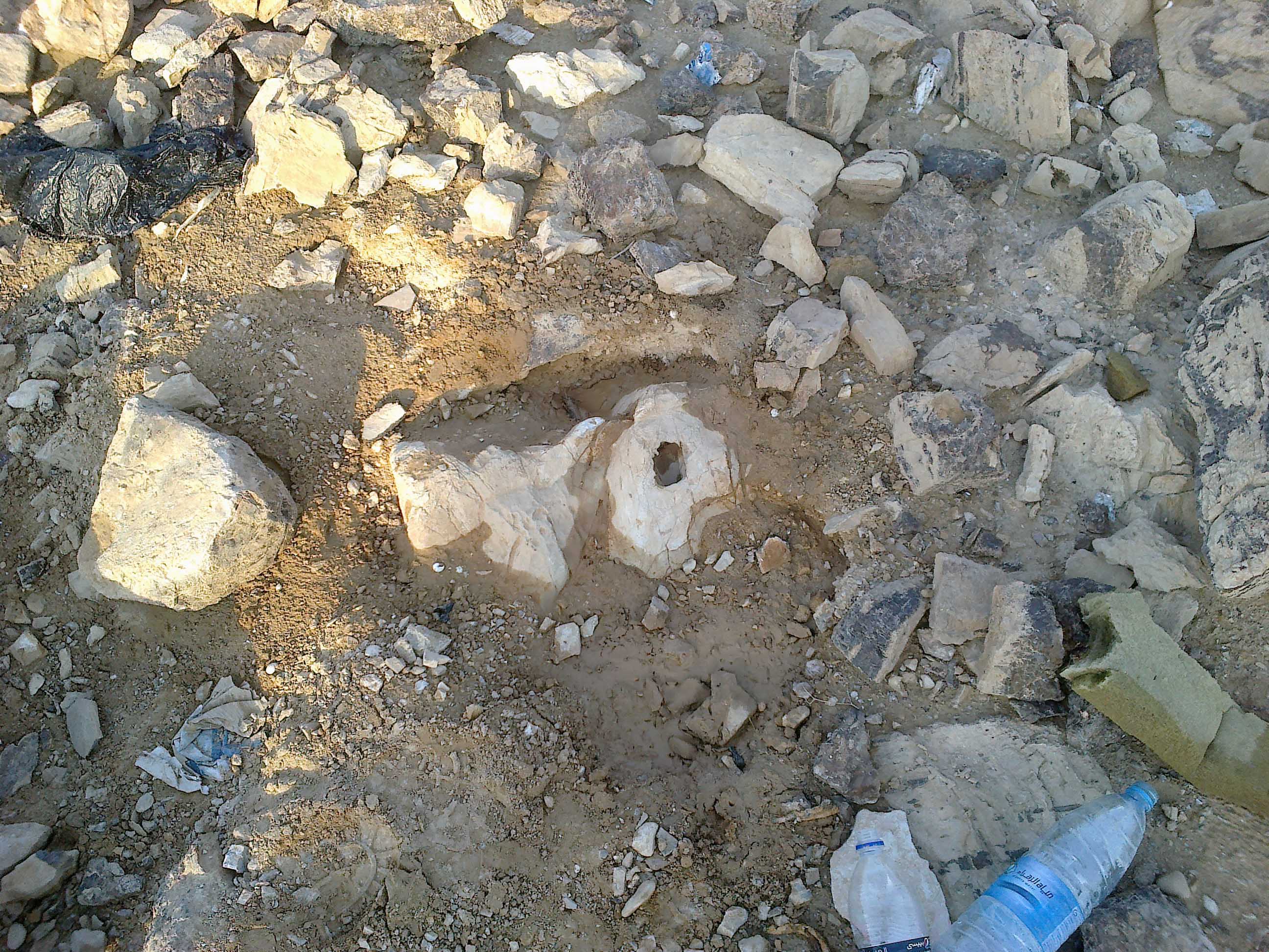 لقيت حجر كبير موضوع بنفس وضع الكرسي عندما ازلته وجد تحت حجر اخر يوجد فيه فتحه كم هو مبين في الصور التاليه