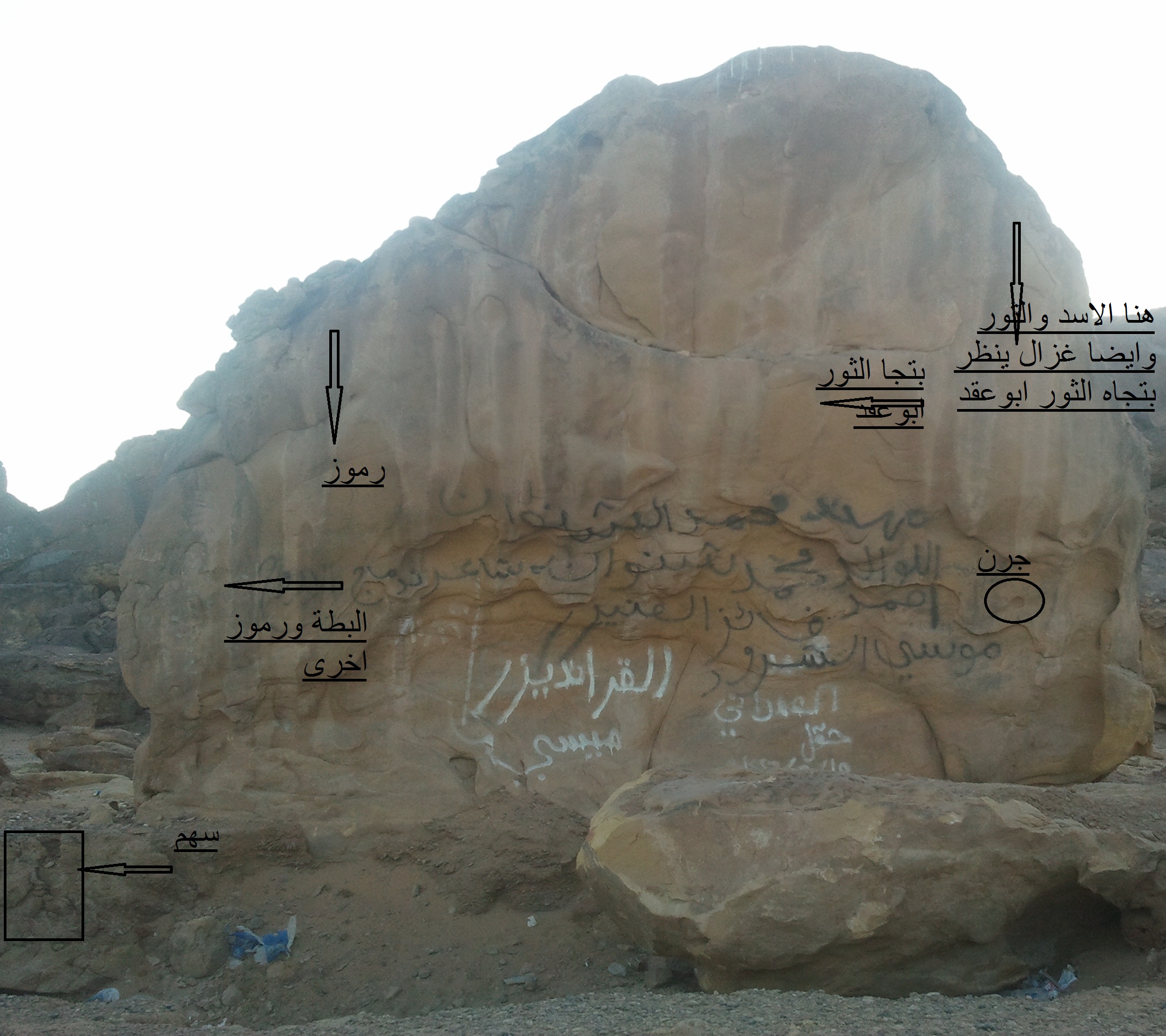 واتمنا تنظر للصور لنفس الصخرة بها رموز اخر مهم جدا بالاضافة لبعض التوضيحات