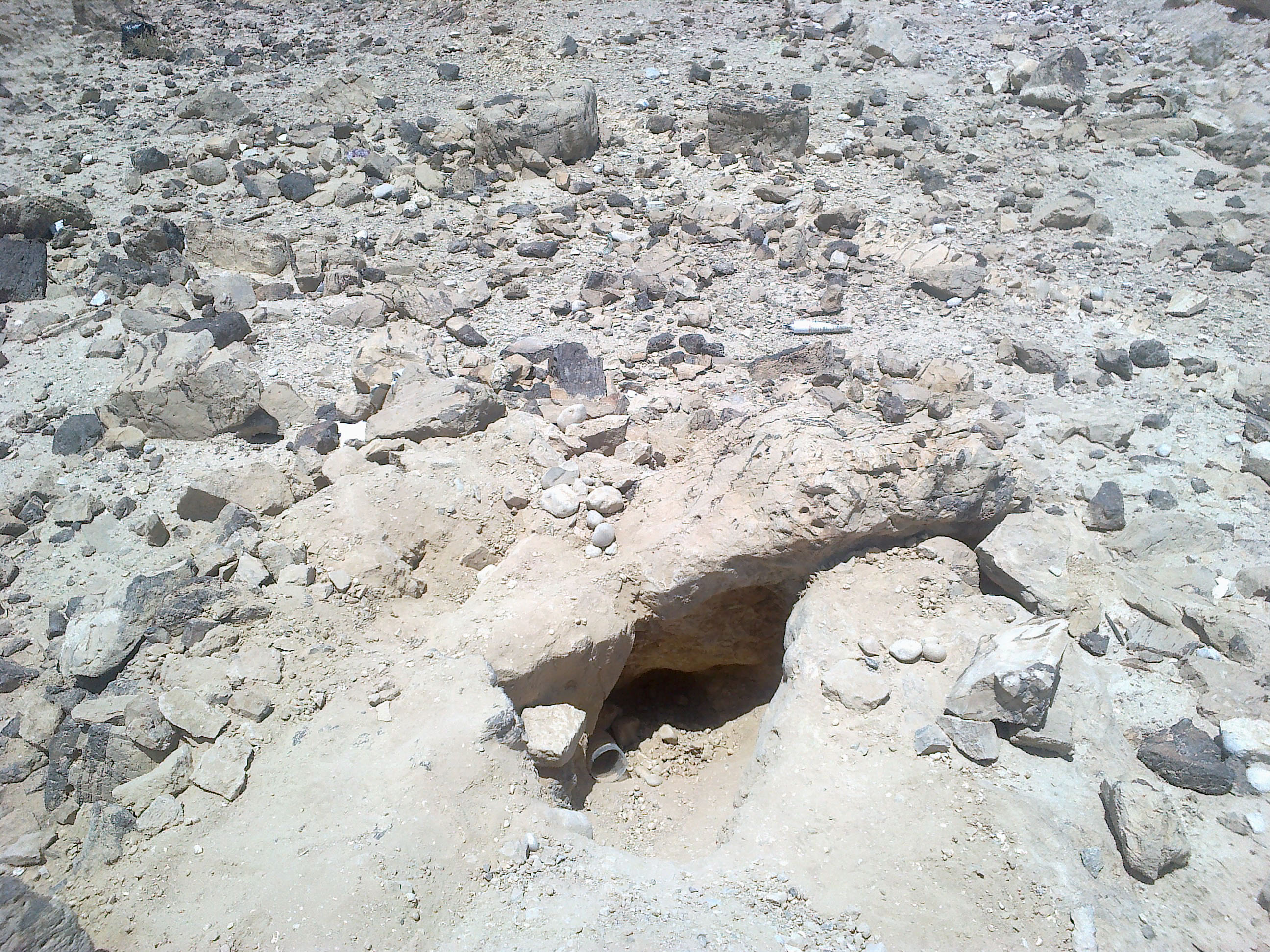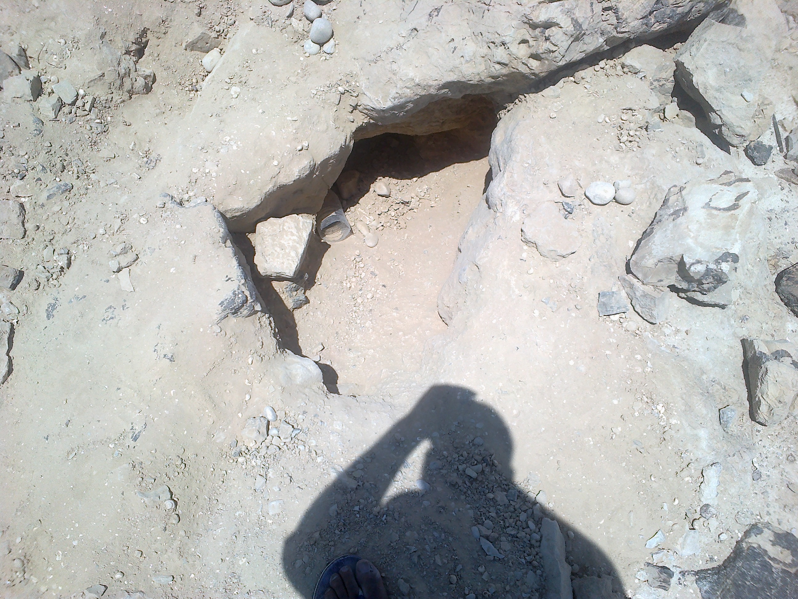 انا نبشت رجم على عقم متر تقريبا لاكن لما اجت اثار عظام لاكن الرم منقول في الرجم كان سهل الحفر على هاذ العقم وجد حجاره دائرية الشكل مرصوصه جنب بعضها البعض في تحت الصخره