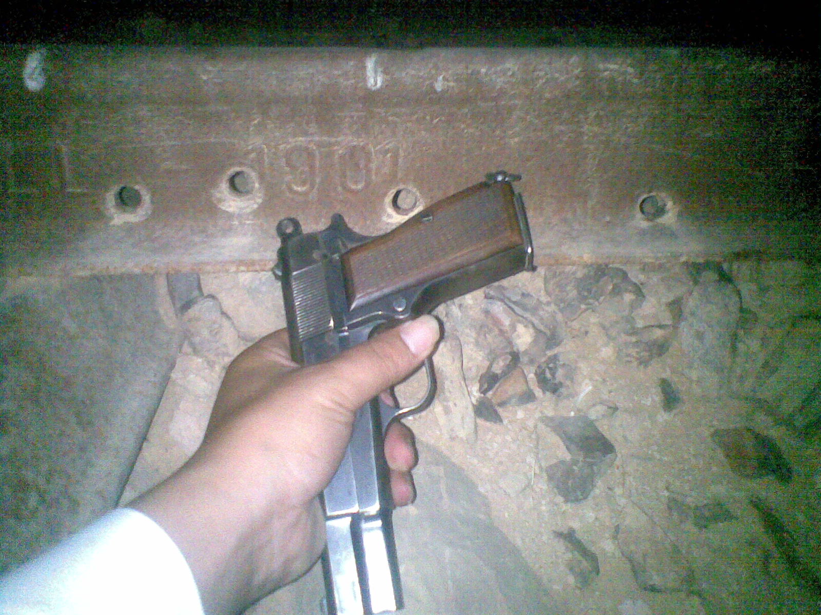 لقد وجدت بطريق الصدفة اربع طلقات على سكة قطار ويوجد جنوب هذه الطلقات طلقة اخرى على بعد 10 امتار تقريبآ وهي اوسع من الطلقات الاربعة ويوجد بعد هذه الطلقه بمسافة ما يقارب 3 متر طلقة اخرى لم تنفذ من الجهه الاخرى ويوجد بجانبها مجموعة ارقام