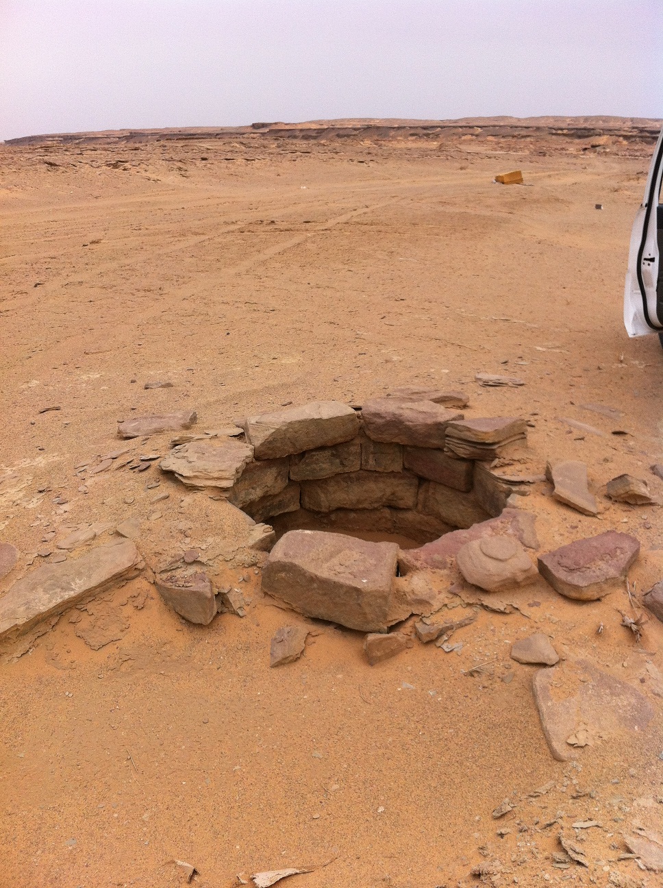 يوجد بير مطلي با الحجاره عمقه متر تقريبا وقطره متر تقريبا وبمنطقه صحراويه ويوجد داخل البير علا الحجر رسمة مفتاح وحرف زي الالف وحرف Yمعكوف من راسه الايسر وبا النسبه للموضوع الثاني يوجد قبر في المزرعه عليه حجاره كثيره بشكل ملحوض ويوجد حرف T علا حجر واقفه عند راس القبر وشكرا لا الاهتمام