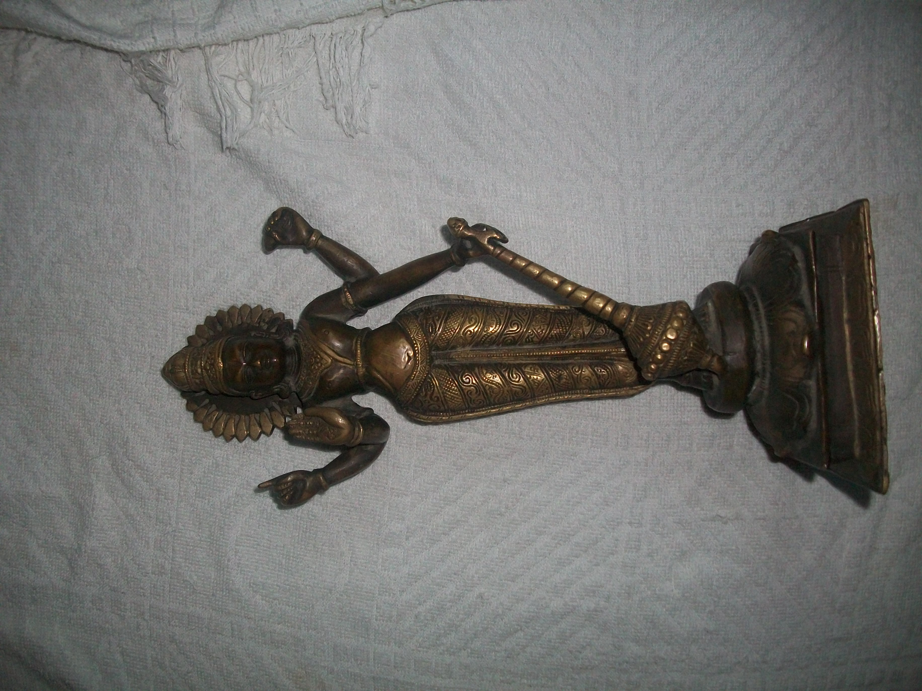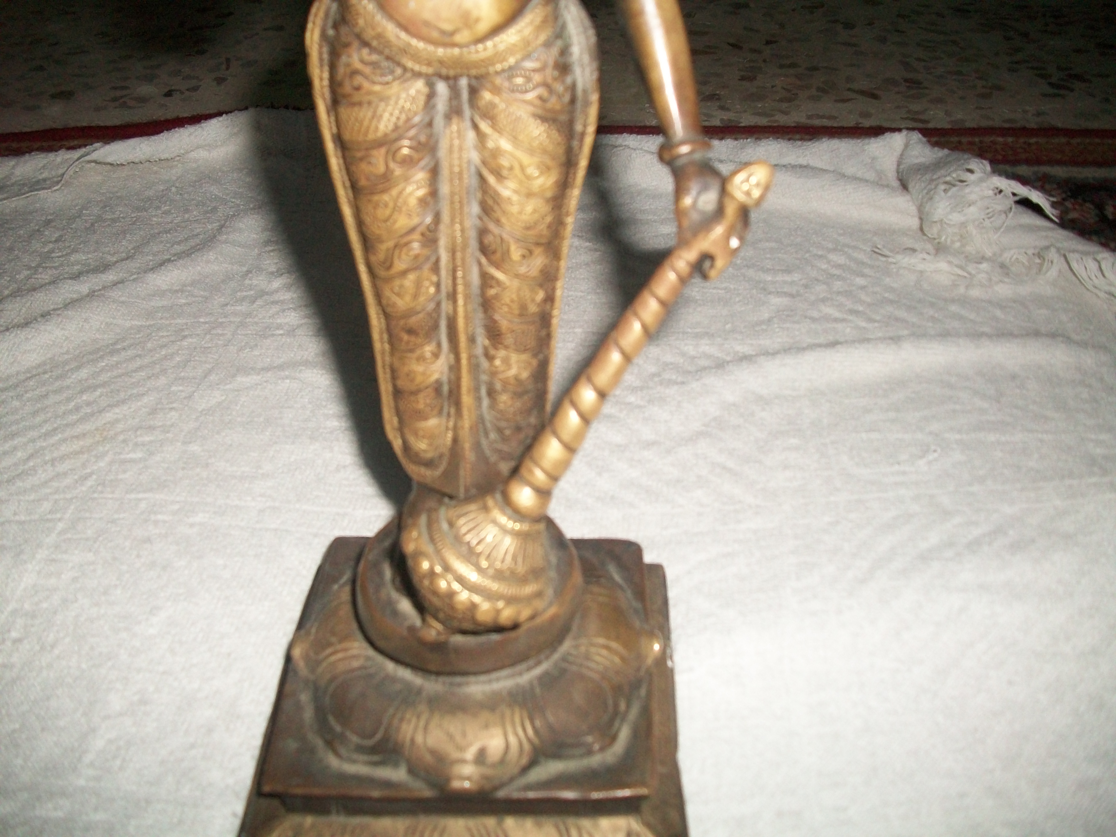 هذا التمثال أريد معرفة هل هو نادر والى أي عهد وعصر يعود وماهو بالضبط وكم يسلوي في حال أردت البيع مع العلم وزنه أربع كيلو تقريبا وهو من النحاس والبرونز على ما أتوقع أريد معرفة رأي الخبراااااء ضروري أرجوكم أفيدوني ..........