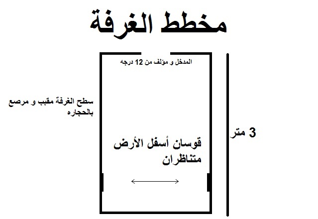 الغرفة طولها تقربا 3 أمتار مقببة الشكل و مرصعة بحجارة مرصوفة بجانب بعضها بشكل دقيق