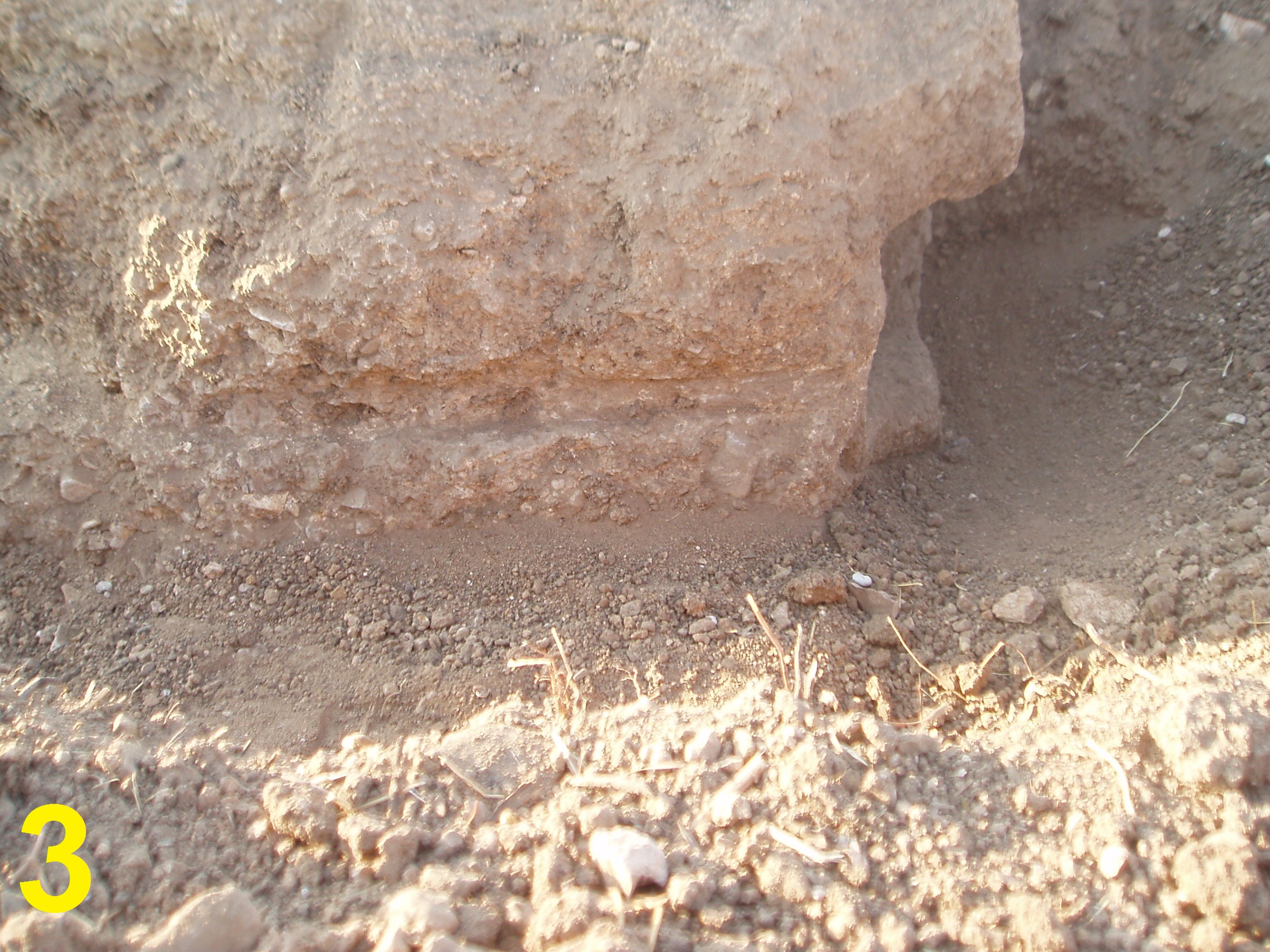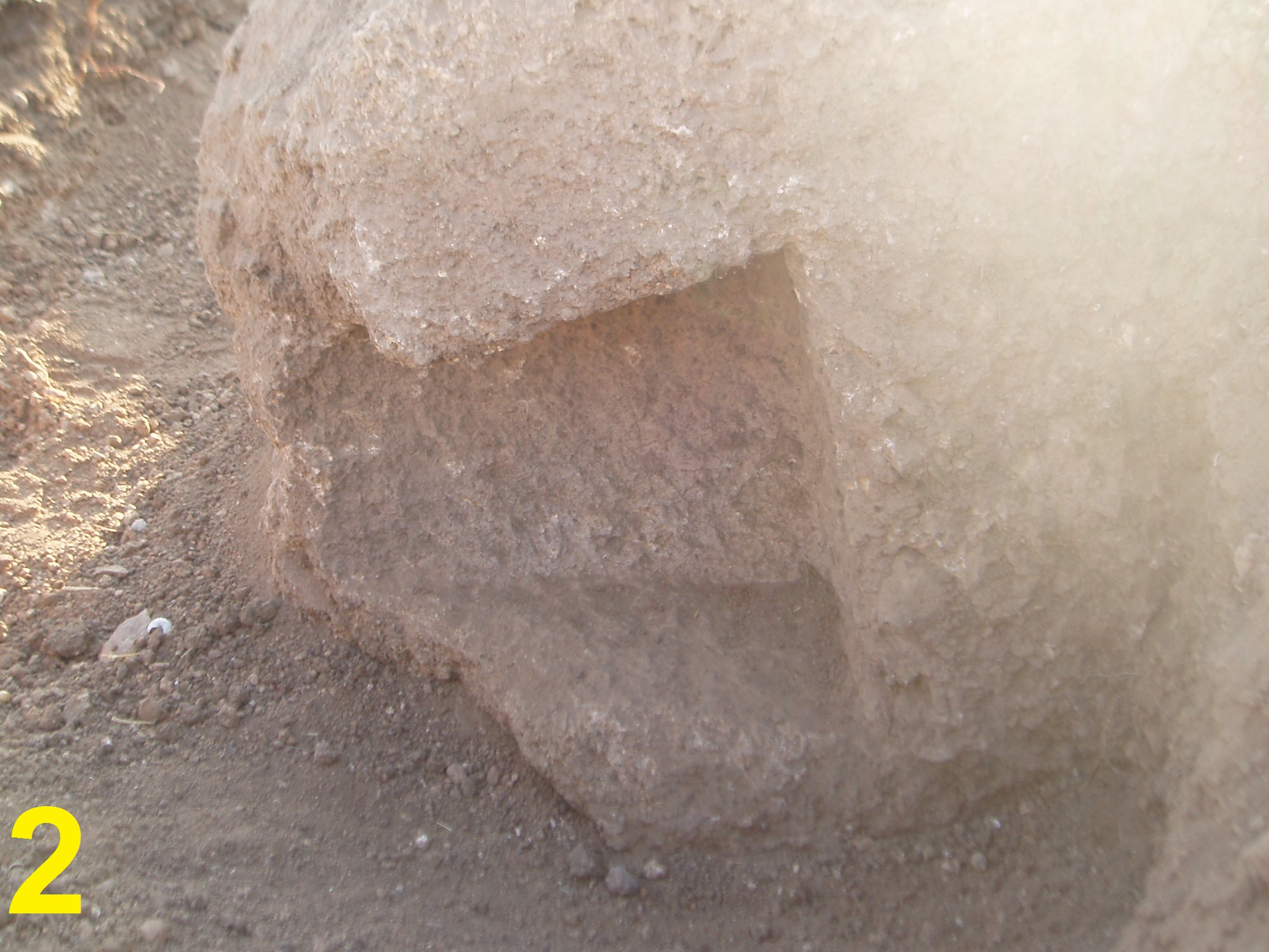 الصورة 3 : بالوجه الجنوبي يوجد سيال أفقي يبدأ من فتحة الجرن الاول و ينتهي عند فتحة الجرن الثاني عمق السيال 1,5 صم و عرضه 3 صم