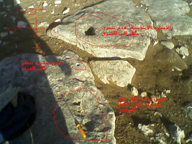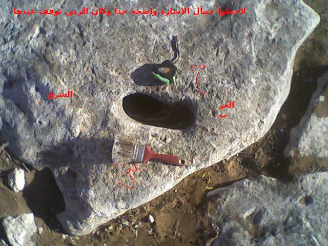 اول ما عثرت عليه اشارة قدم باتجاه الغرب امامها جرن القياسات