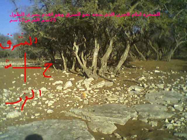 اذا لاحظتم جيدا الصورة رقم 18 فمباشرة امام القدم ب 4الى 5 امتار هناك شجرة وامام الشجرة ب10الى15متر شجرة اخرى لاحضوا الترية رملية جدا وهناك صخور متناثرة في المكان ولكن ليست ضخمة وانما صفاء صماء وفي حدود 20الى 30متر نفس الشئ اشجار ولا وجود لكتل صخرية كبيرة ساخرج اللحظة الى المكان واجمع ما يمكن من المعلومات والصور وربما الفيديو ثم احيطكم علما بكل جديد .