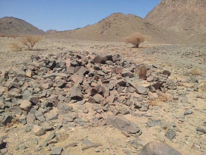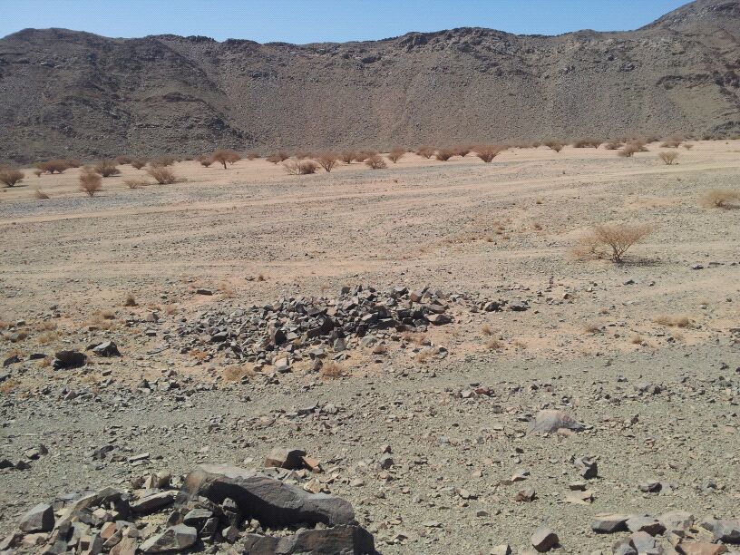 وبعد لقيت الرجم الكبير غرب الاشاره وهذي صووره طبعا هذا اكبر رجم موجود بالمنطقه والرجم تقريبا يبعد عن الاشاره من 100 متر الى 110