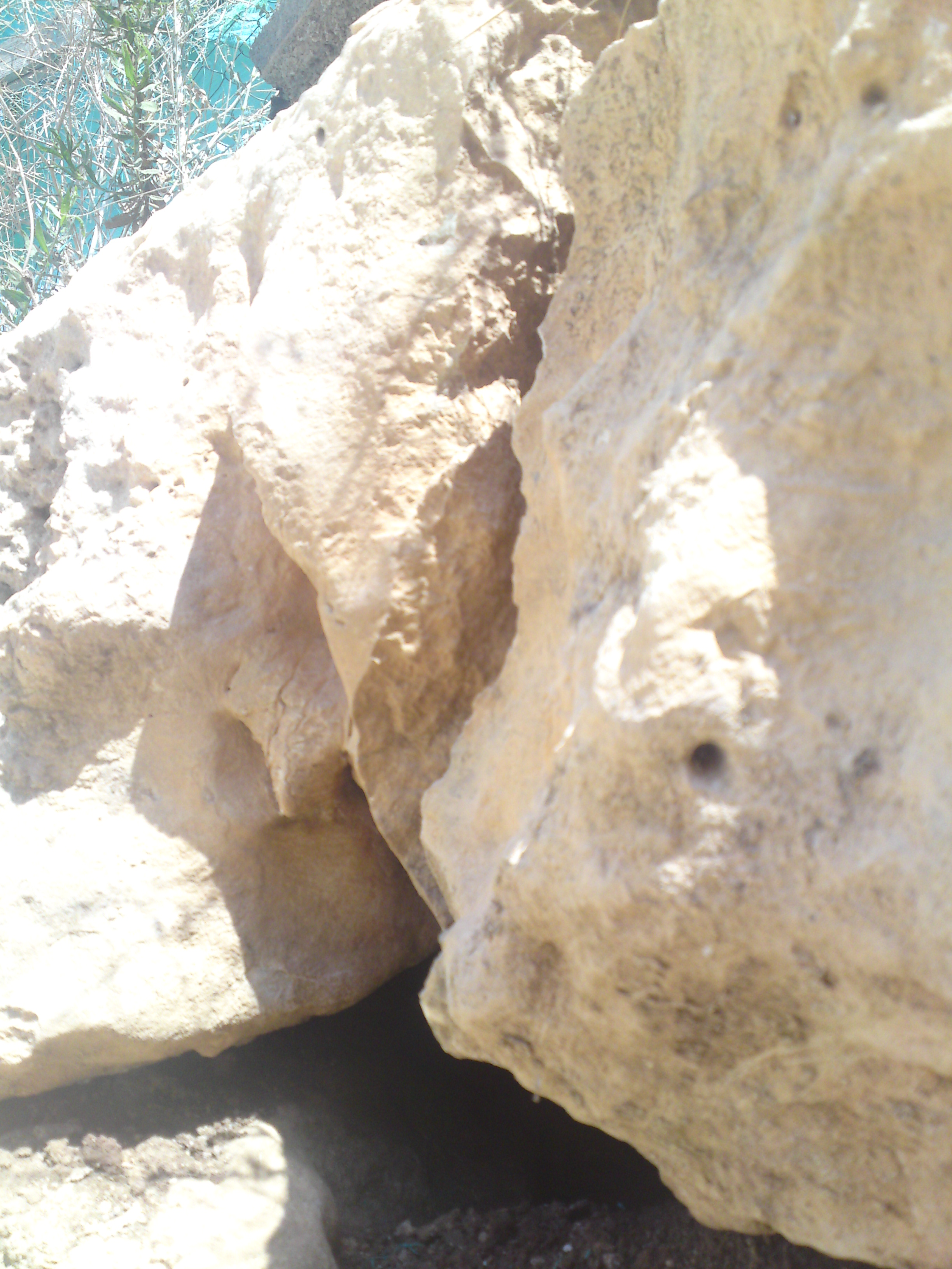 دصخرة كبيرة منحوته تحتها جرن
