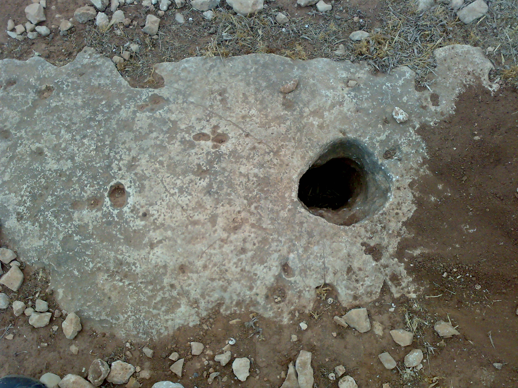 شكرا لاهتمامك اخي الفاضل انه على صخرة في الارض اما قطره فهو 12 ستم ولكنلا ادري ما عمقه انه عمودي وعلى شماله بحوالي متر يوجد جرنين على صخرتين وهما ما تقدمت بصورهما في موضوع جرن سماوي