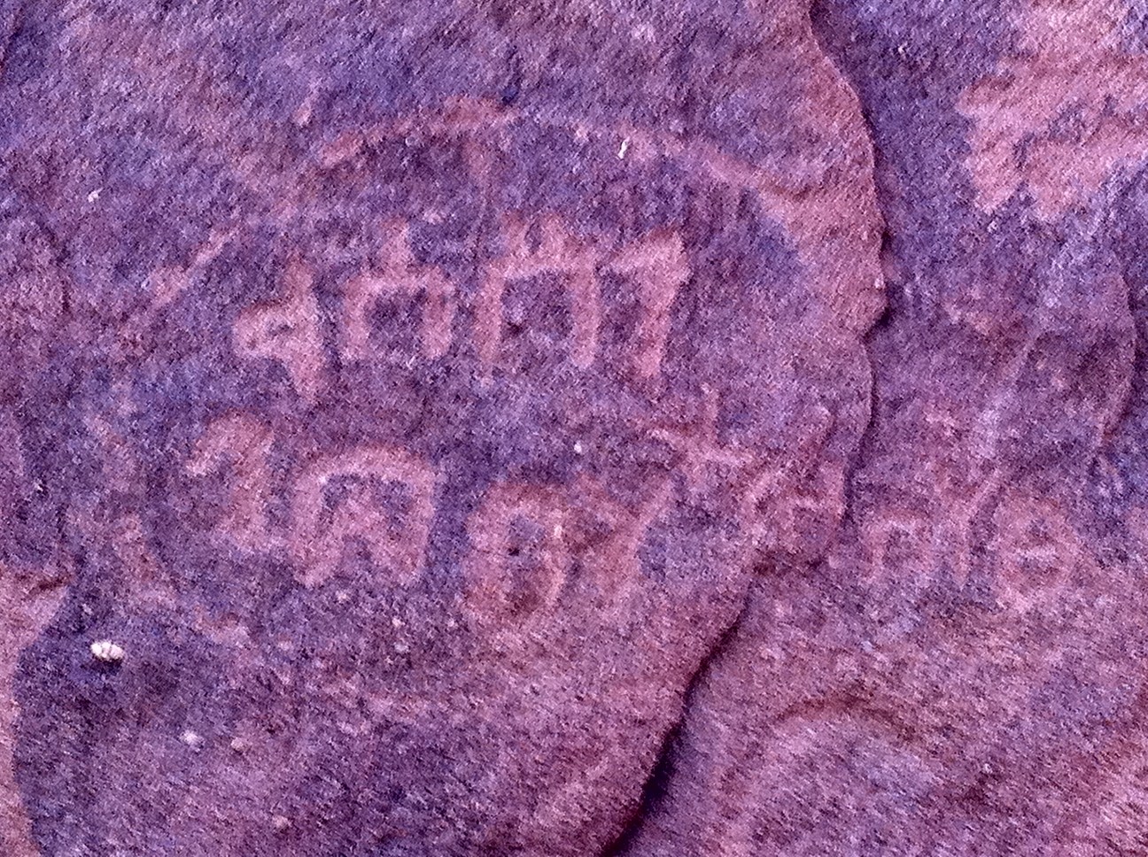 بجانب النقش وادي وفي المقابل جبال صغيرة