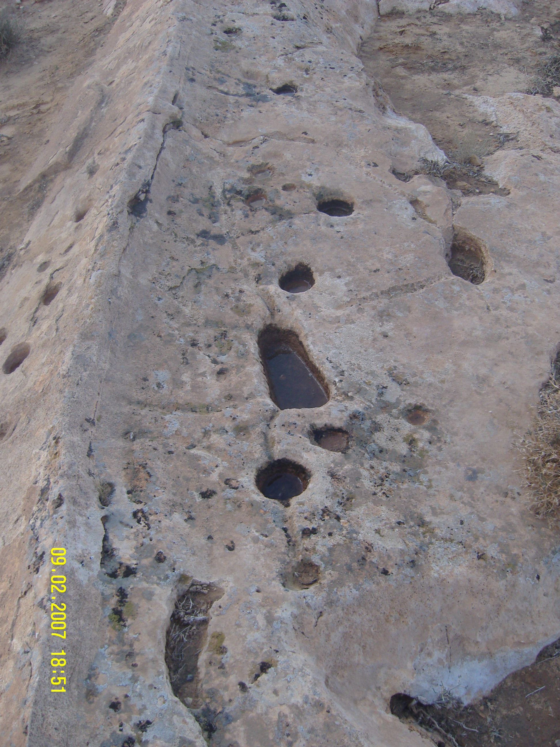 اولا و قبل كل شيء اريد ان ابلغك اخلص تحياتي و اصدق عبارات الامتنان والشكر اخي العزيز المستكشف . وبالعودة للموضوع اخي الكريم انا من الجنوب التونسي . اخي فد ارسلت اليكم بعض الصور والتي حسب معرفتي البسيطة هي منقلة وجدت على صخرة ضمن سلسال صخري وتقع وراء الوادي وهي وفي الجبل وهي مطلة على المنطقة الاثرية وهذه الصخرة هي على واجهتين من جهة المقابلة للمنطقة توجد العديد من الجرون والتي تختلف اشكالها وعمقها من جرن الى اخر وهي كما تشاهدون في الصورة اما في الجهة الخلفية فيوجد جرن كبير في شكل قدم واجران مختلفة تربط بينها سيالات والصورة لديكم وسارسل معها هذا الرابط والذي يحمل بعض الصور الاخرى لمزيد التوضيح وشكرا 4shared - My 4shared - shared folder - free file sharing and storageبسم الله الرحمن الرحيم وَأَمَّا الْجِدَارُ فَكَانَ لِغُلامَيْنِ يَتِيمَيْنِ فِي الْمَدِينَةِ وَكَانَ تَحْتَهُ كَنزٌ لَّهُمَا وَكَانَ أَبُوهُمَا صَالِحًا فَأَرَادَ رَبُّكَ أَنْ يَبْلُغَا أَشُدَّهُمَا وَيَسْتَخْرِجَا كَنزَهُمَا رَحْمَةً مِّن رَّبِّكَ وَمَا فَعَلْتُهُ عَنْ أَمْرِي ذَلِكَ تَأْوِيلُ مَا لَمْ تَسْطِع عَّلَيْهِ صَبْرًا .