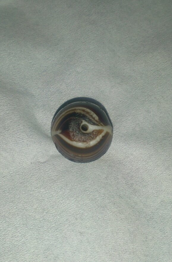 لقد عثرت على هذه الخرزه بالصدفه في موقع بعيد بالبر ولا اعرف عنها اي شي ... ومن لديه معلومات عنها يفيدنا جزاه الله كل خير اضغط على الصورة لعرض أكبر.