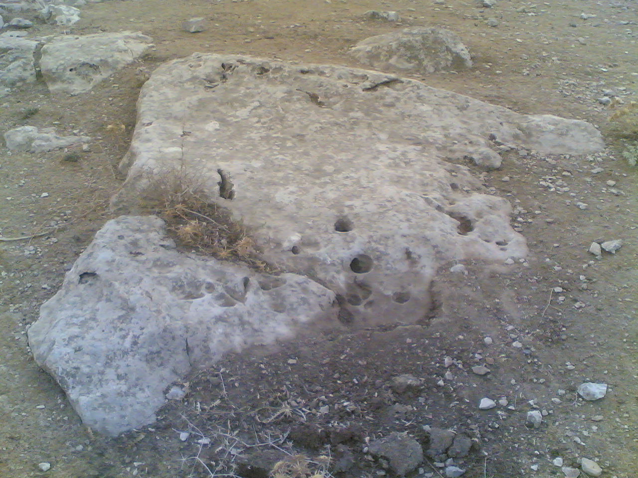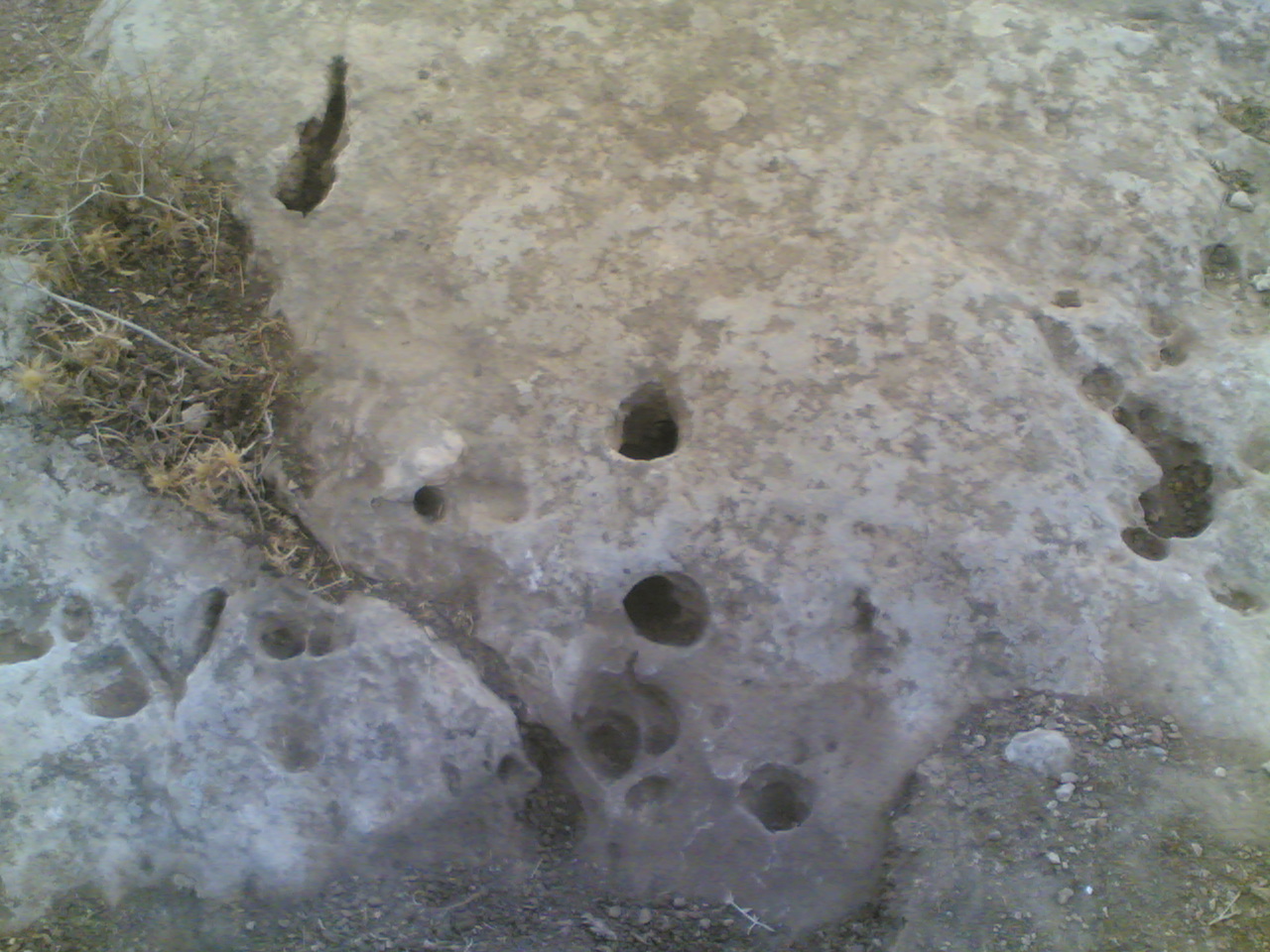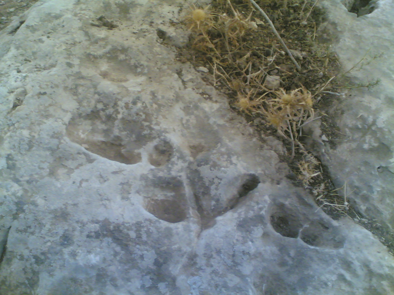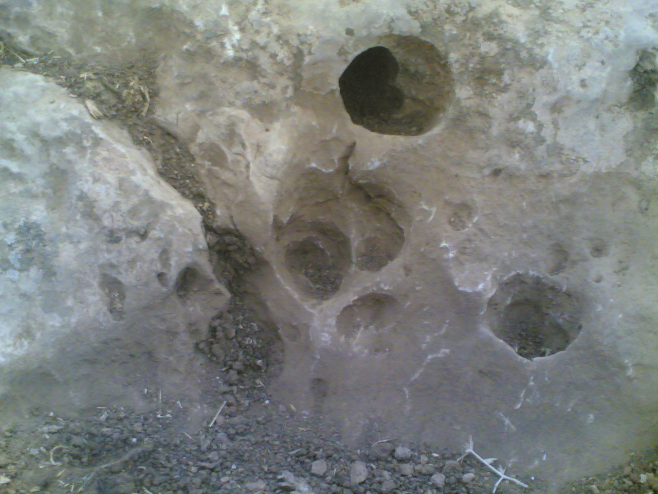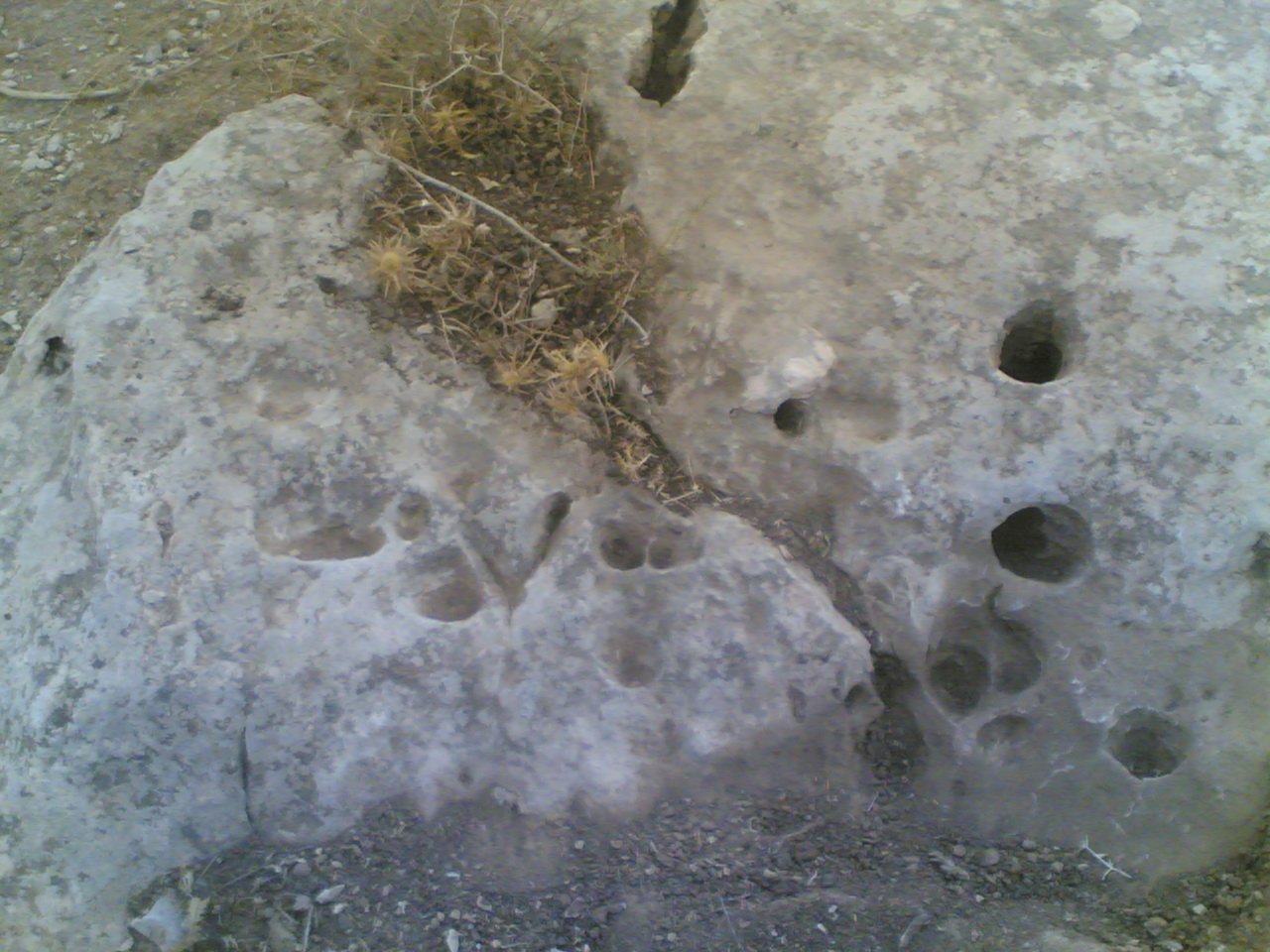 خرامية وحرف v بالقرب من معسكر تركي وعدة جرون في نفس الصخرة