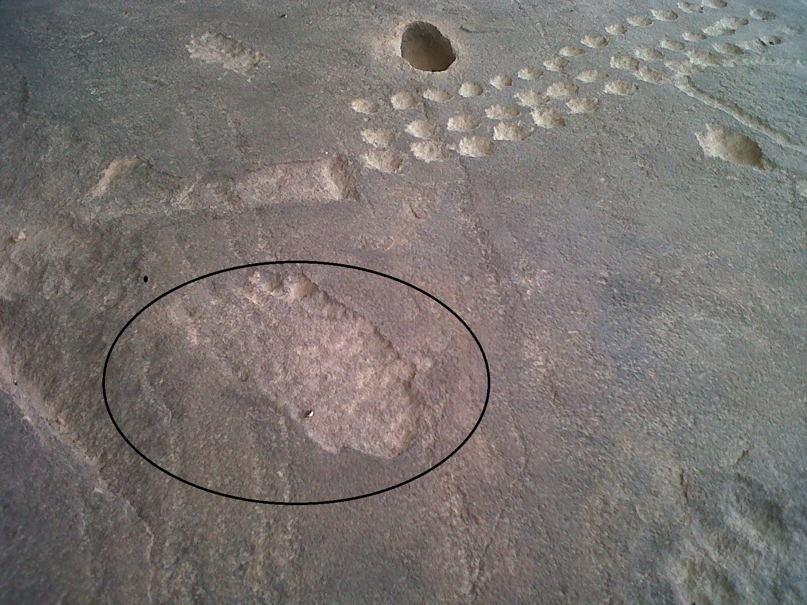منقلة واشارة جمل على صخرة ومعها اشارات عده